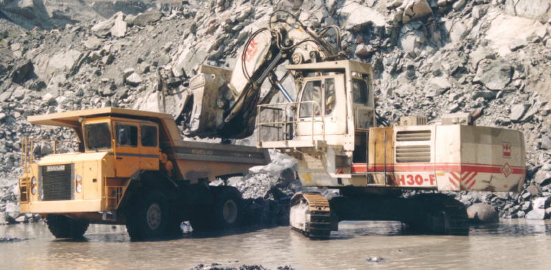 33-11D wird von Liebherr 992 beladen |